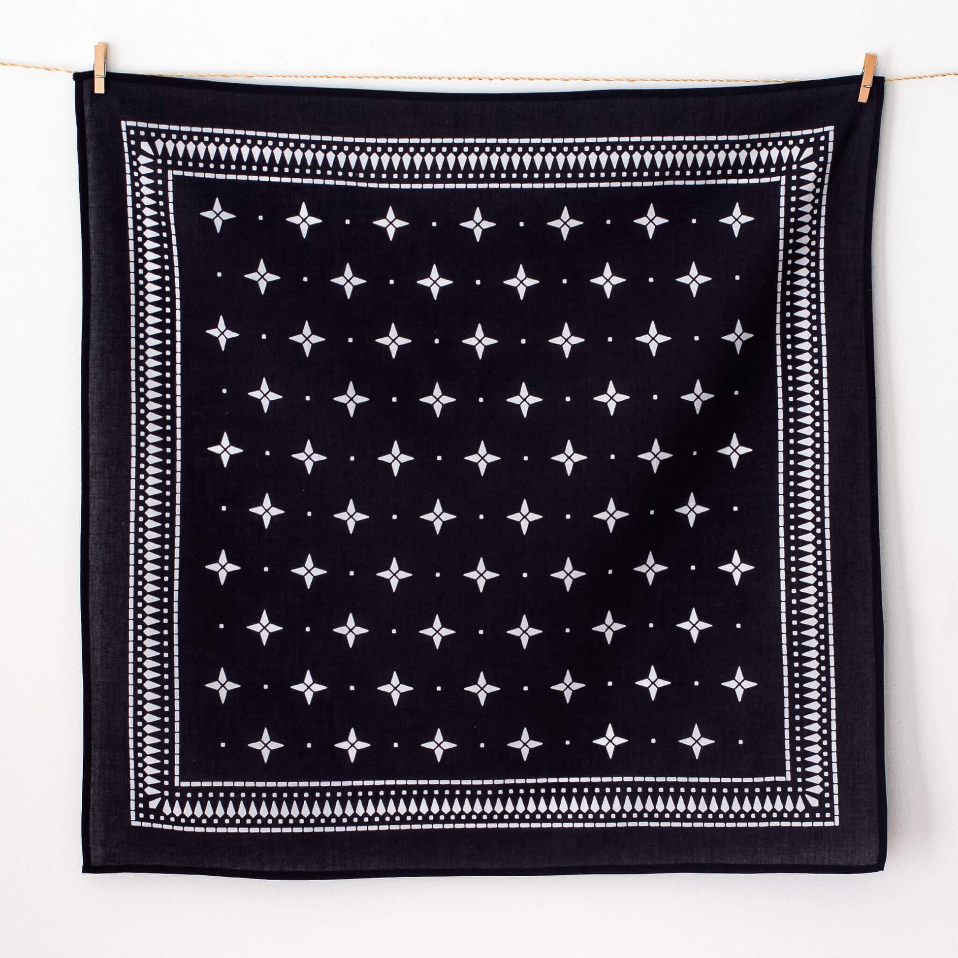 Make a bold yet subtle statement with the Midnight Star Black Bandana. Inspired by desert skies and tribal geometry, this piece blends classic form with symbolic depth. Designed to complement any look, it’s a staple for adventurers, creatives, and free spirits alike.