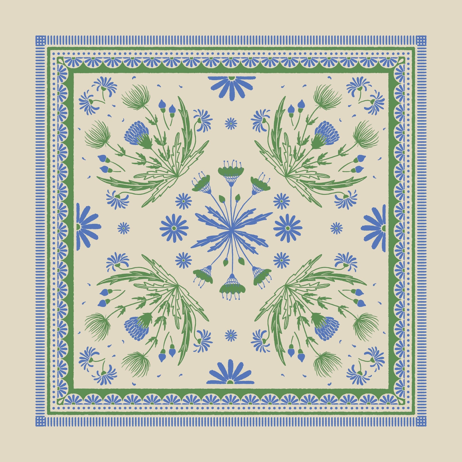 Rooted in tradition and wild beauty, the Folk Garden Bandana brings together the harmony of nature and timeless folk art. With hand-drawn blooms, swirling seed pods, and mirrored symmetry, it feels like a pressed flower journal page made to wear.